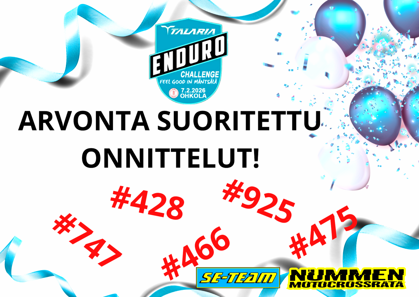 Onnea voittajille – ja iso kiitos kaikille kuskeille osallistumisesta! 🙌
